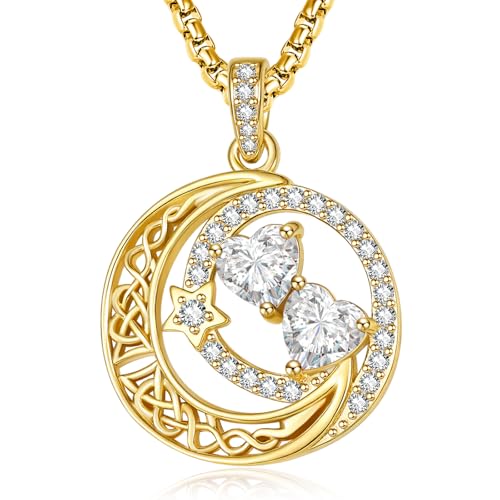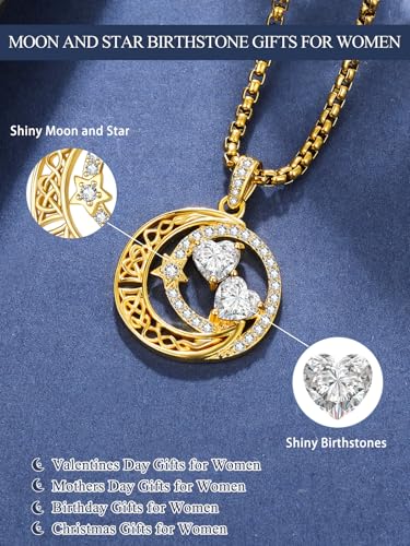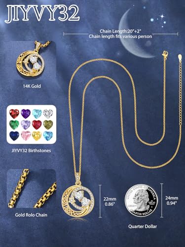 Specification: 14K Gold Moon and Star Necklace Gifts for Women – Double Heart Birthstone Necklace, Wedding Anniversary Birthday Gifts for Her Wife Mom Daughter Grandma Sister