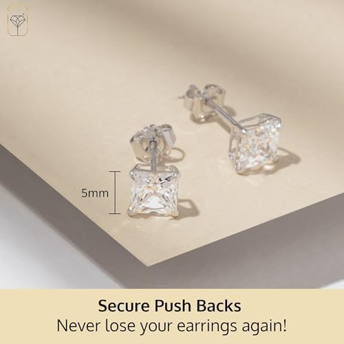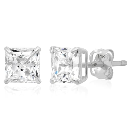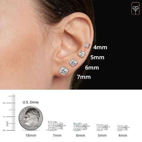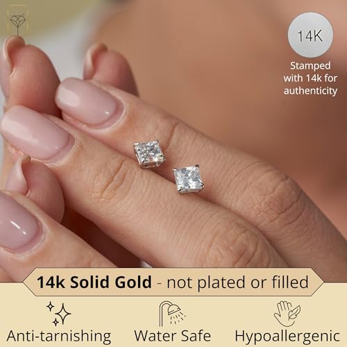Specification: 14K Gold Princess Cut CZ Stud Earrings for Women & Men | Anti Tarnishing Cubic Zirconia Earrings Studs with 14K Gold Butterfly Backs | 4MM 5MM 6MM 7MM CZ Gold Earrings by MAX + STONE