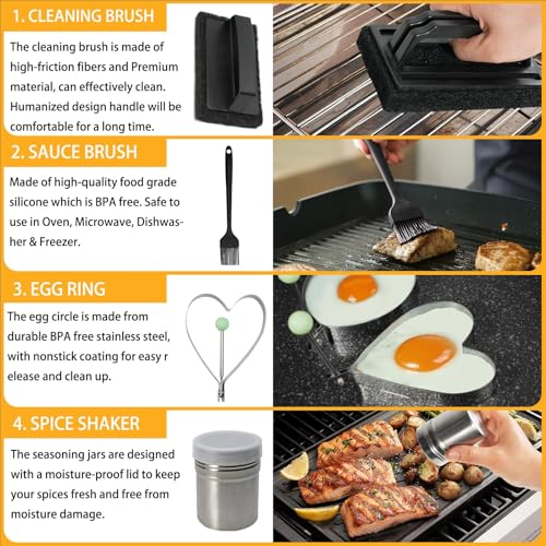 150Pcs Griddle Accessories Kit, Flat Top Grill Accessories Set for Blackstone and Camp Chef, Griddle Spatula Set with Metal Spatula, Enlarged Spatulas, Basting Cover for Outdoor Barbecue