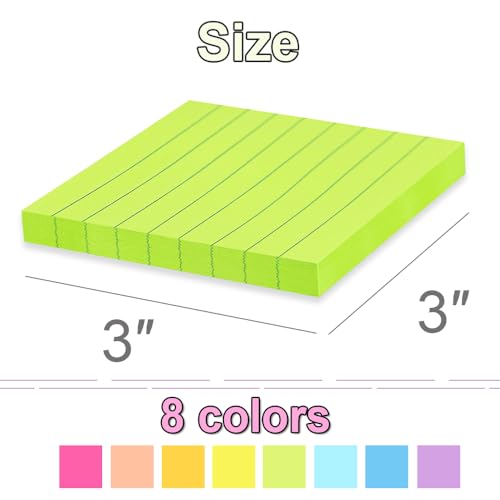Specification: (16 Pack) Lined Sticky Notes 3×3 in Ruled Stickies Super Sticking Power Memo Pads Bright Colors