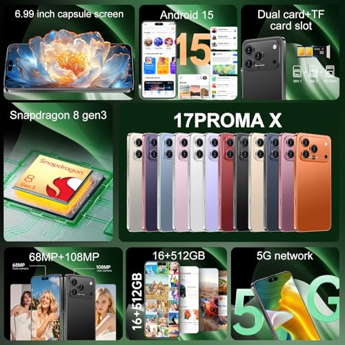 Specification: 17PROMA X Smartphone: Snapdragon 8 Gen 3 Processor, 16GB+512GB, 7000mAh Battery, 6.99″ Screen, 68+108MP Cam, Android 15, 5G, Dual SIM – Beat Others in Speed & Life! (Black)