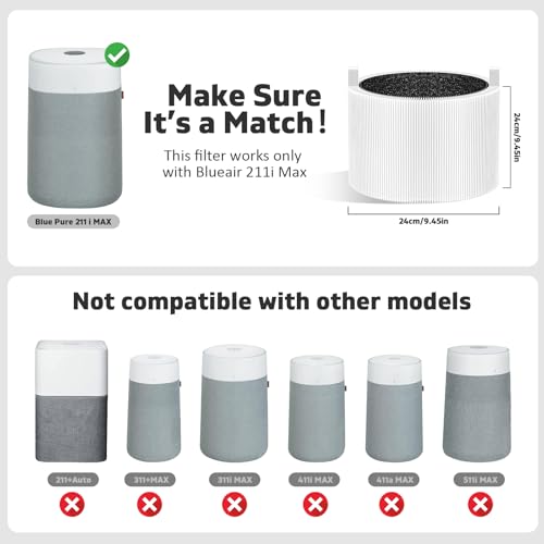 【Attention Please】 Please note that this filter is NOT compatible with 211+, 211+ Auto, 311, or other Blueair models. Only fits the Blue Pure 211i Max. Make sure to check your purifier model before placing the order