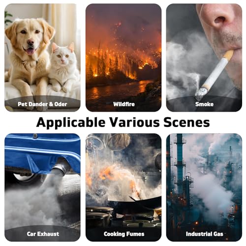 【High-Efficiency Filtration】Featuring H13 True HEPA technology, our filter captures 99.97% of airborne particles as small as 0.1 microns—including dust, pet dander, pollen, and smoke.The activated carbon filter helps to eliminate common household odors like pet smells, smoke, and cooking fumes
