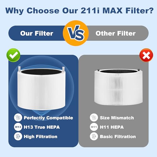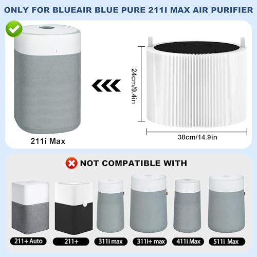 Compatibility: The Blue Pure 211i Max replacement filter is fully compatible with Blueair Blue Pure 211i Max Air Purifier, coded as F2MAX. Not compatible with 211+ and 211+ Auto. Please confirm your machine model before order.