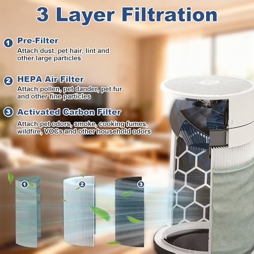 High Efficiency Filtration: The HEPA Filter works for 99.97% of airborne particles down to 0.3 microns in size. The premium activated carbon particles can help you absorb the pungent pet odor, such as the smell of pet stool volatilizing in the air.