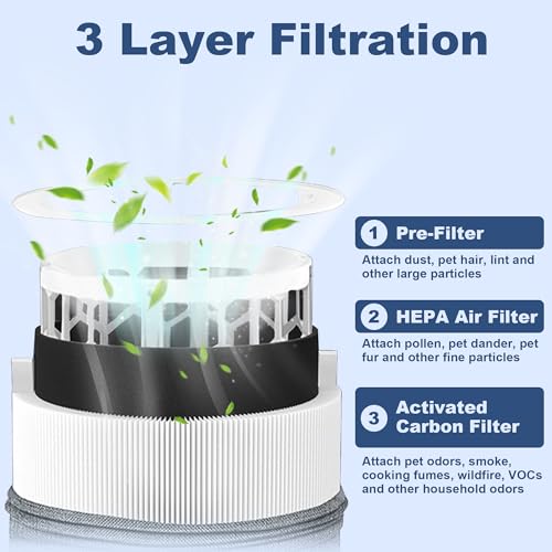 High Efficiency Filtration: The HEPA Filter works for 99.97% of airborne particles down to 0.3 microns in size. The premium activated carbon particles can help you absorb the pungent pet odor, such as the smell of pet stool volatilizing in the air.