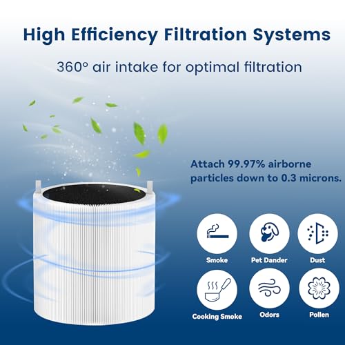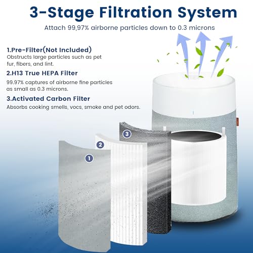 Premium Filtration: The 311i Max Replacement Filter works with a high-efficiency 2-stage filtration system. The H13 True HEPA filter can catch 99.99% of airborne particles as small as 0.1 microns, and the carbon filter helps to get rid of smells, smoke, VOCs and more.