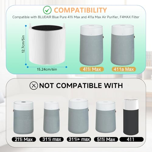 This 411i Max replacement filter fully compatible with Blueair 411i Max and 411a Max air purifiers,Blue Pure F4MAX Filter. Note: Not compatible with Blue Pure 411+,411 Auto & Mini Air Purifier.