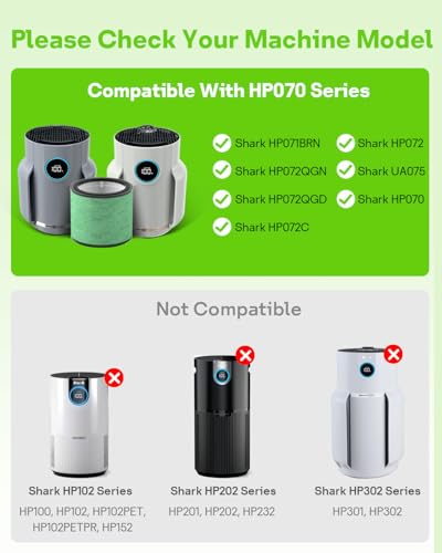 【PERFECT FIT】The HP072 Replacement filter is fully compatible with Shark NeverChange Compact Pro HP070, HP071BRN, HP072, HP072GN, HP072PL, HP072PK, HP072QGD, HP072QGN, HP072C, UA075 Air Puri-fier