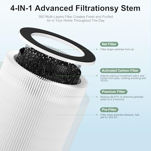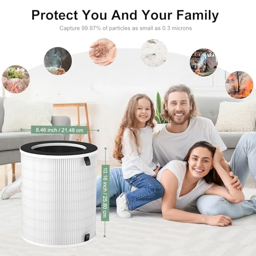 360° 3-Stage Filtration System: The MAX replacement filter features a Nylon Pre-Filter, H13 True HEPA Filter, and Activated Carbon Filter, working together to capture 99.97% of airborne particles as small as 0.1 microns, including dust, pollen, and smoke.