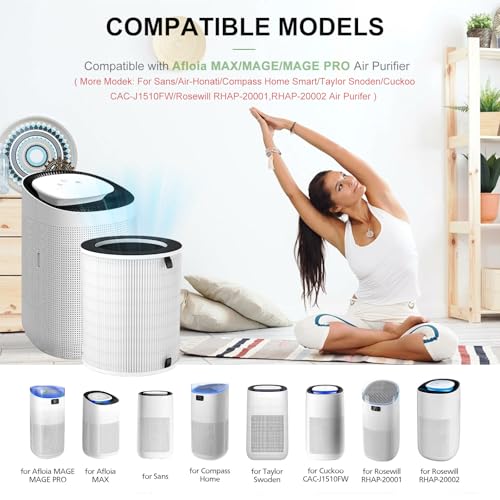 Compatible Models: Compatible with Afloia MAX/MAGE/MAGE PRO, Sans Air Purifiers, Air-Honati, Compass Home Smart, Taylor Swoden, Cuckoo CAC-J1510FW, and Rosewill RHAP-20001/RHAP-20002. Please check your purifier model before ordering.