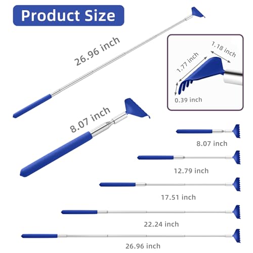Specification: 2 Pack Portable Extendable Back Scratcher, Stainless Steel Telescoping Back Scratcher with Beautiful Present Packaging(Blue)