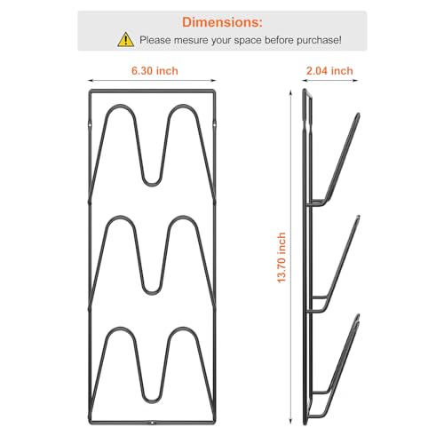Specification: 2 Pack Pot Lid Organizer Rack, 6-Tier Pot Lids Holder for Cabinet Door/Wall, No Drilling Adhesive Wall/Door Mounted Rustproof Pot and Pan Cover for Kitchen Storage, Classic Black