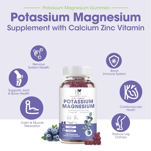 Specification: 2 Pack Potassium Magnesium Gummies, Sugar-Free Potassium Gummies with Magnesium Glycinate 500mg Chewable Potassium Magnesium Supplements with Calcium, Zinc & Vitamins to Support Leg Muscle Relaxation