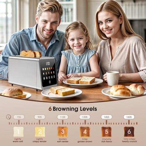 [Memory Function for Personalized Toasting] Simplify your mornings with the built-in memory function. Set your ideal bread type and shade level and the toaster will remember your preferences for the next time. With just one tap it will toast your bread exactly the way you like it — no need to readjust the settings each time!