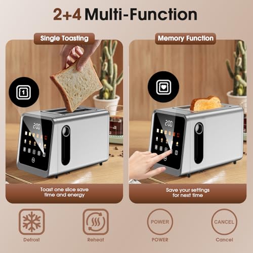 [One-Slice Toasting Mode for Quick Results] When you only need one slice of toast the one-slice toasting mode ensures both slots heat simultaneously delivering even toasting for a perfectly crisp slice. This touchscreen toaster is designed to save energy while providing the same delicious results making it perfect for quick mornings or single servings!