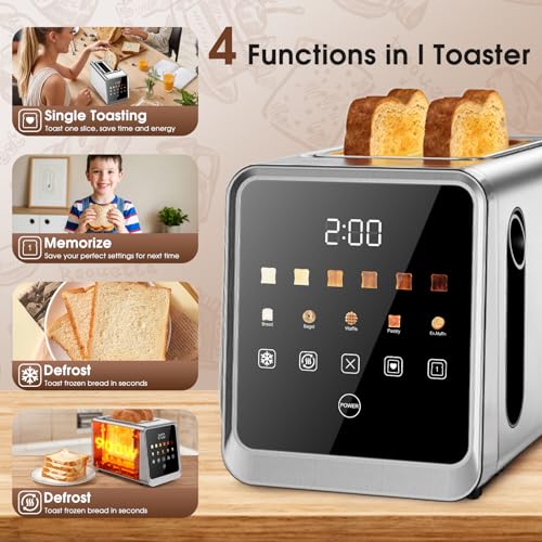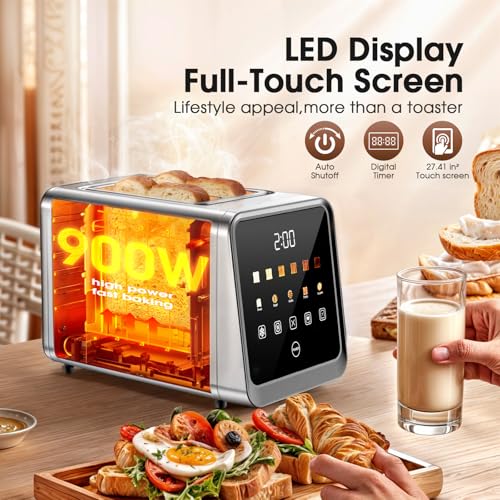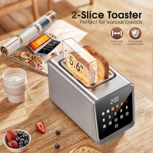 2-Slice Smart Toaster, Digital Touchscreen with Memory Function, 1.5″ Extra-Wide Slots, 5 Bread Types & 6 Browning Settings, 900W for Fast Toasting, Defrost & Reheat Modes