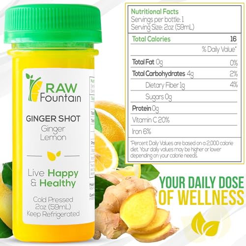 Specification: 20 Ginger Shots with Lemon 2fl Oz, Vitamin C, Raw and Cold Pressed, Unpasteurized, Boosts Immunity, All Natural, No Artificial Flavors or Preservatives