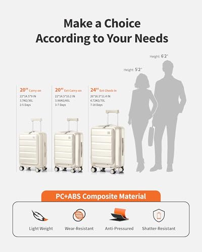 Be the first to review “20 IN Carry On Luggage 22x14x9 Airline Approved – Front Pocket Hardside Travel Suitcase Unbreakable -with Cup Holder,Charging Port,Side Pothook, 360°Spinner Wheels, TSA Lock-White”