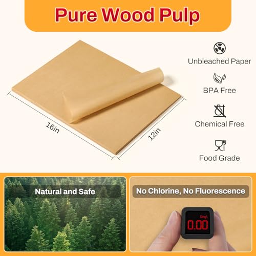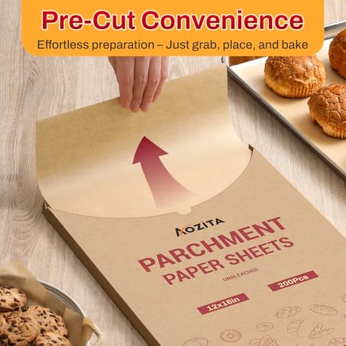 Specification: 200Pcs 12×16 Inch Unbleached Parchment Paper Sheets for Baking, Pre-Cut, Non-Stick Parchment Paper for Baking, Cooking, Grilling, Air Fryer, Half Sheet Baking Sheets for Baking Cookies, Cooking, Oven