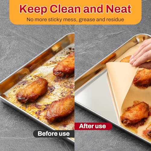 Non-Stick Convenience: Greaseproof coating ensures cookies, breads, and candies slide off effortlessly—no oil spray needed. Disposable sheets mean zero scrubbing; just toss and enjoy spotless pans.