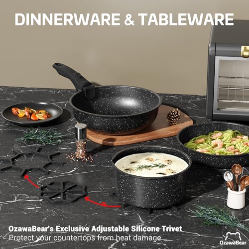 Functional Cookware Set: Use as tableware, bakeware, dinnerware, grill pans, or fridge storage (with lid). Includes OzawaBear’s exclusive adjustable silicone trivet to protect your countertops from heat damage.