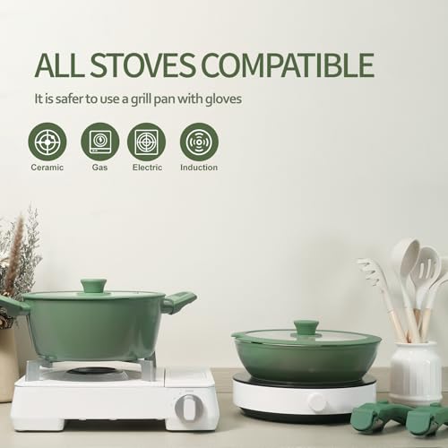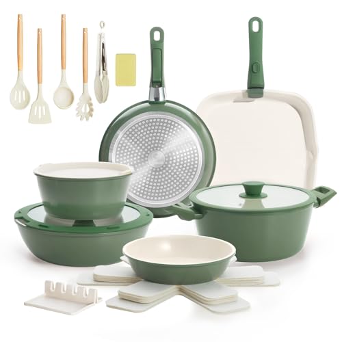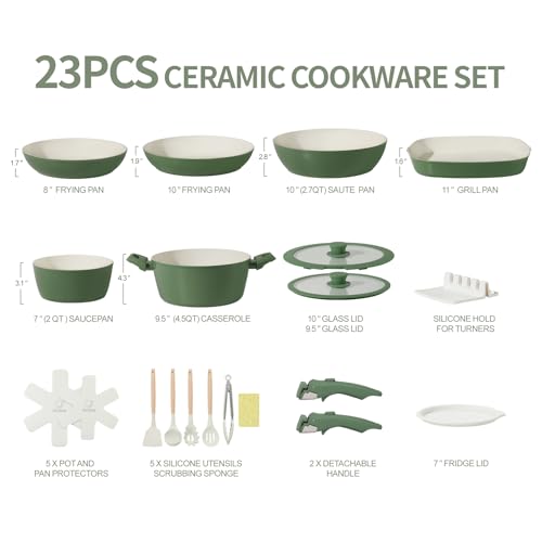 Specification: 23pcs Ceramic Pots and Pans Set, Nonstick Detachable Handle Cookware, Induction Kitchen Cooking Set with Removable Handle,include Frying Pans & Saucepans Oven Safe(Green)