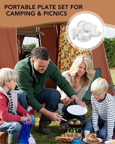 Specification: 24 Pcs Dinnerware Set- Dinner Plates Set- Picnic & Camping- Unbreakable & Reusable- Includes 4 x 9in, 4 x 8in Plates, 4 x 6in Bowls, 4 Cups, 4 Stainless Steel Forks and Spoons- Kitchen, Dorm, Office