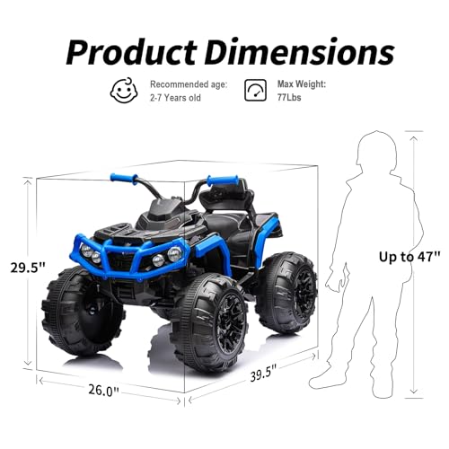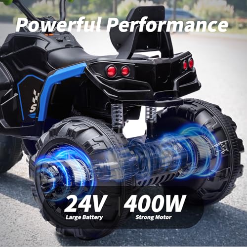 Specification: 24V Kids ATV 4 Wheeler, Electric ATV Four Wheeler for Big Kids with Bluetooth, 2x200W Motors – Blue