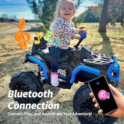 24V Kids ATV 4 Wheeler, Electric ATV Four Wheeler for Big Kids with Bluetooth, 2x200W Motors – Blue