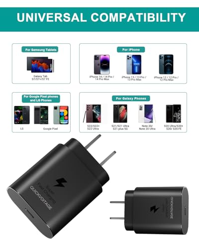 USB-C Compatibility – One of the standout features of this samsung charger plug is its universal compatibility, which works perfectly for for Samsung Galaxy S25,S25 ultra s24 s24 ultra,S24 FE S23,S23 Ultra,S23+,S23 FE,S22,S22+,S22 Ultra,S22 FE,S21,S21+,S21FE,S21 Ultra,S20,S22 FE,S20 Ultra,S10,S10e,S10Lite,S10+,S10E,S9,S9+,S8,S8+,s6,s7,S7 EDGE,Note 20, Note 20 Ultra, Note 10, Note 9,A6,A7,a9,A10,A10E A12,A13,A14,A14 A15 A16 A20,A21 A20S,A20E,A21S,A22,A23,A24,A25, A26, A40,A41,A42, A30,A31,A32,A33,A34,A35,A36,A56,A55,A54,A53,A52,A51,A50,A52S,A05S,A73,A72,A71,A70,A05S,A04s,A03s,M14/M15/M33/A34/M35/M53/M54/M55,F54,F14,F23,Z Flip3/4/5,Z Fold2/3/4/5 Tablet,Air/Mini