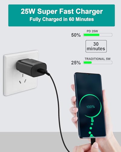 25W Super Fast Type C Charger + Cable Compatible with Samsung Galaxy S22 Ultra Charging Block Wall S21 USB