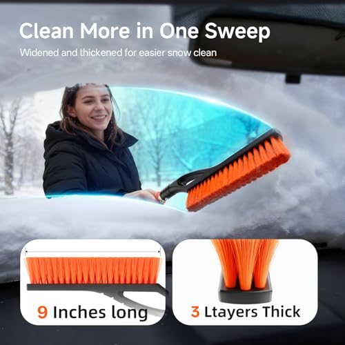 【PERFECT-SIZED FOR ANY CAR】The 27-inch length ice scraper and brush for car gives you extra reach, while the 9″ brush head and 4.5″ scraper efficiently tackle heavy snow and hard ice. This ideal size ensures a thorough clean without causing any damage to your car.