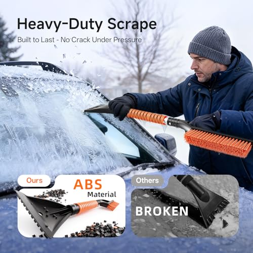 【DURABLE ALUMINUM BUILD】Our windshield scraper for ice and snow Built to last season after season! Our snow brush is crafted from high-quality aluminum, making it both lightweight and incredibly sturdy. It’s engineered to withstand the toughest winter conditions without bending or breaking.