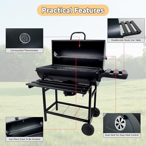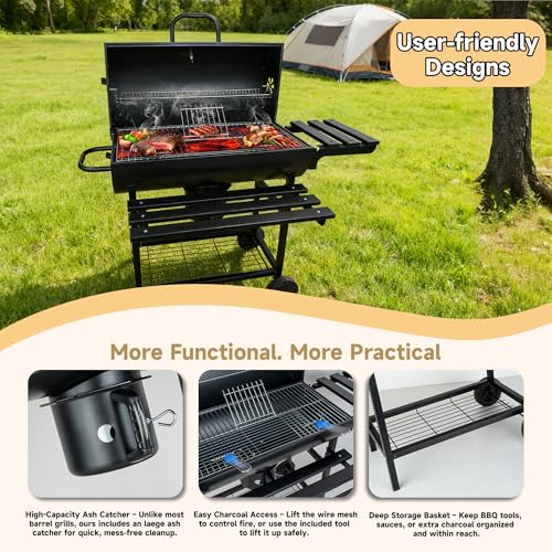 [High-Capacity Barrel Design] Cook more at once with a spacious grilling area ideal for smoking ribs, grilling steaks, or roasting veggies. Perfect for backyard BBQs, camping trips, or holiday cookouts.