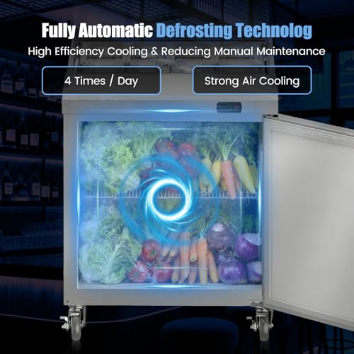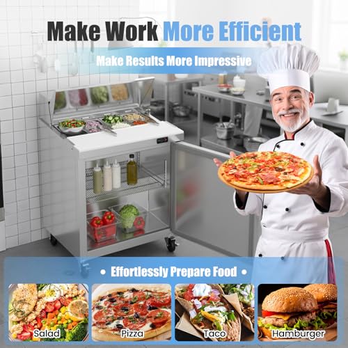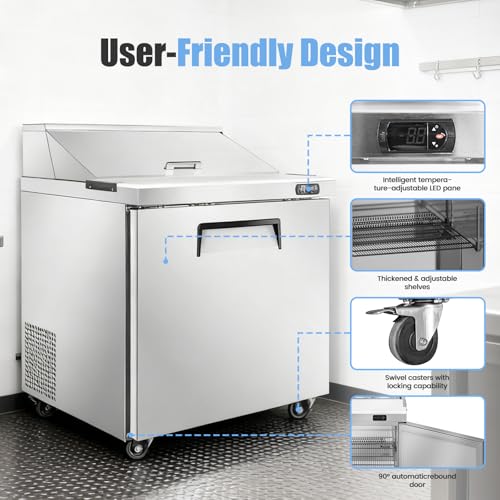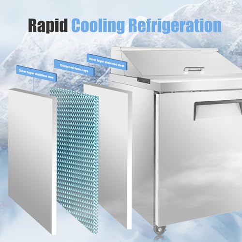 Specification: 29″ W Commercial Refrigerator Sandwich Salad Prep Table, Stainless Steel 1-Door Sandwich Prep Table Refrigerator, Counter Fan Cooling Refrigerator with 8 Pans for Restaurant, Bar
