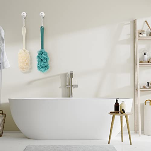 2Pack Back Scrubber for Shower,PIPUHA Loofah Sponge Shower Brush Using Body Exfoliating with Long Handle, Loofah on a Stick for Men Women, Bathing Accessories for Body Brushes (Blue and White)