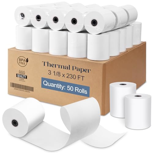 Wide Application: Use as pos paper rolls 3 1/8 x 230 50 rolls with various thermal printers and registers, ensuring versatile and efficient operations