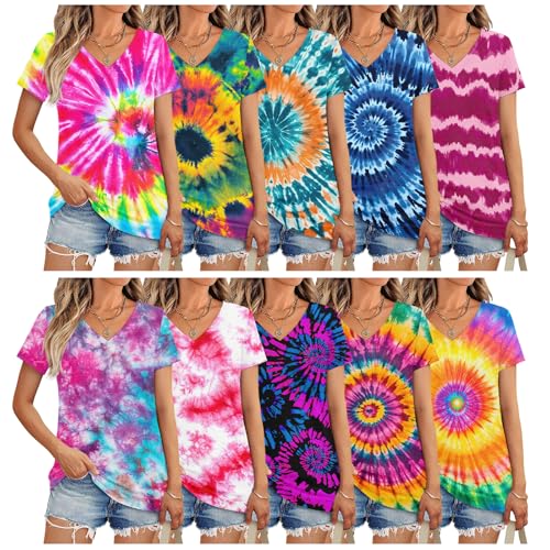 3/10 Pack V Neck T Shirts for Women Short Sleeve Tshirts Summer Casual Tops Loose Fit Basic Tees