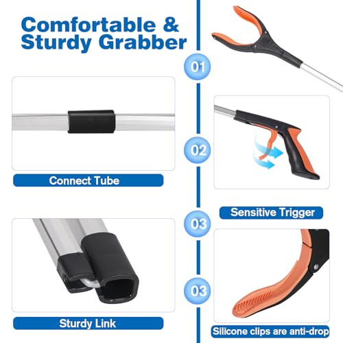 【Ergonomic & Comfortable Grip】: Thoughtfully designed with an ergonomic handle, our grabbers for seniors offer a comfortable grip that reduces strain. This makes it easier to retrieve items with minimal effort, enhancing user comfort and convenience during use.