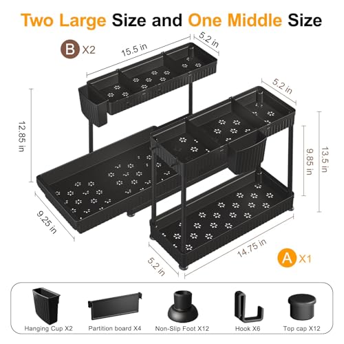 Durable & Sturdy ABS Material – Made from high-quality ABS plastic, this under sink organizer is waterproof, rust-resistant, and built to last. The 15.5”L × 12.85”H × 9.25”W size fits most under-sink spaces while keeping all your essentials secure.