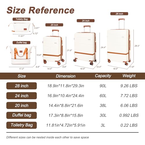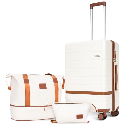 Stylish & Lightweight 3-Piece Set: Discover the perfect blend of style and function with our luggage set. It includes a sleek 20″ carry-on, a practical duffel bag that attaches to the handle, and a compact toiletry bag, all designed for the modern, style-conscious traveler