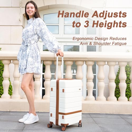 Specification: 3-Piece 20 Inch Carry On Luggage Set, Durable Hardshell Spinner Wheel Suitcase with TSA Lock, Lightweight PC+ABS for Family Vacation Business Travel Airline Approved, Beige