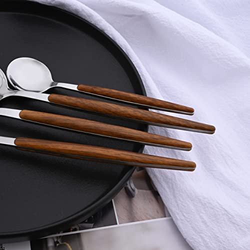 Uniturcky faux-wood handle silverware set, elegantly designed. They are mirrored, sleek and stylish, strong and durable to hold. It is the perfect choice for family dinner, entertaining guests or hosting parties, also an ideal gift for relatives and friends, etc.