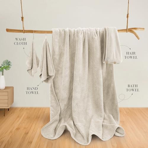 Specification: 35X70 Inches Extra Large Bath Towels Sets of 4 for Bathroom Super Soft Quick Dry Bath Towels Hand Towels Washcloth Towels Microfiber Shower Towels for Women Daily Use (Khaki, 4 Piece)