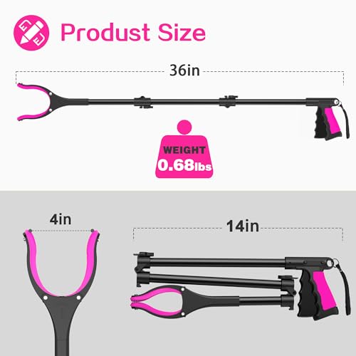 Specification: 36 INCH Long Grabber Reacher Tool,Trash Picker Foldable Pick Up Stick with Strong Grip Magnetic,360°Rotating Anti-Slip Jaw 4″ Wide Claw Opening,Hand Grabber for Seniors