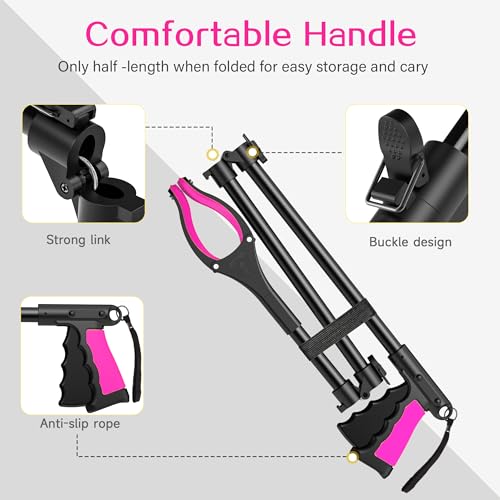 Foldable and Portable Design- ->The reacher grabber tool can be easily stored in small spaces as it folds down to 14 inches when not in use. It can also be attached to mobility aids such as wheelchairs or walkers for added convenience.
