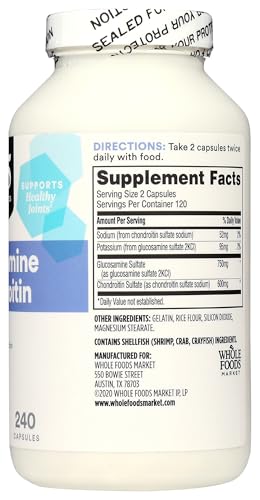 Specification: 365 by Whole Foods Market, Glucosamine Chondroitin, 240 Count