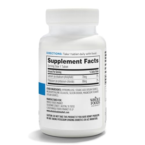 Specification: 365 by Whole Foods Market, Sustained Release Potassium 99mg, Vegan, 250 Tablets