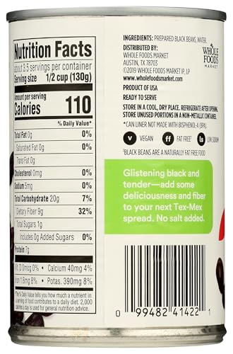 Specification: 365 by Whole Foods Market, Unsalted Black Beans, 15 Ounce